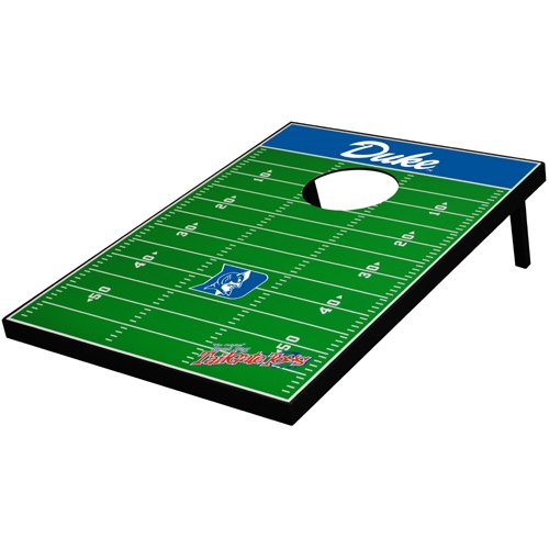NCAA Duke Blue Devils Tailgate Toss Comes with two game boards with your favorite team's logo and colors and 8 bean bags ( 2 Sets of 4.) Handle attached to boards makes the game very easy to transport. Game Boards velcro together. Officially Licensed with NCAA Weighs 30lbs All boards have 2 legs that rotate out (to play game) or under board (for storage.)